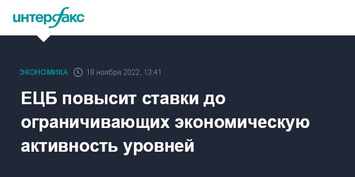 ЕЦБ повысит ставки до ограничивающих экономическую активность уровней