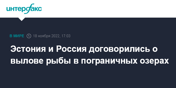 Москва. 18 ноября. INTERFAX.RU - Правительства России и Эстонии договорились о вылове рыбы в 2023 году в пограничных озерах - Чудском, Теплом и Псковском, сообщили в Министерстве окружающей среды Эстонии.