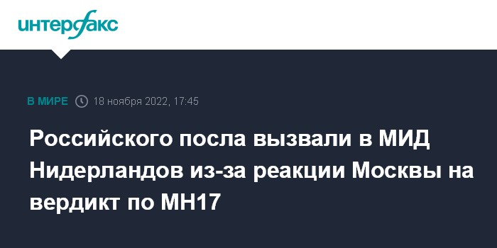 Российского посла вызвали в МИД Нидерландов из-за реакции Москвы на вердикт по MH17