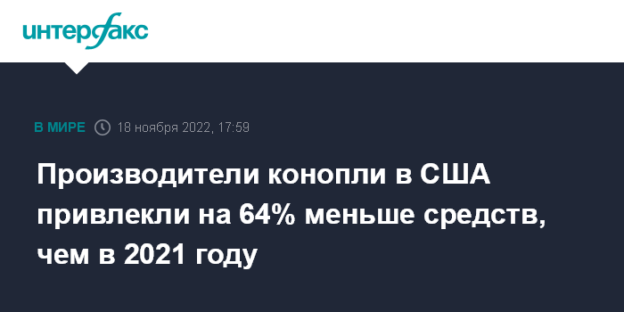Производители конопли в США привлекли на 64% меньше средств, чем в 2021 году