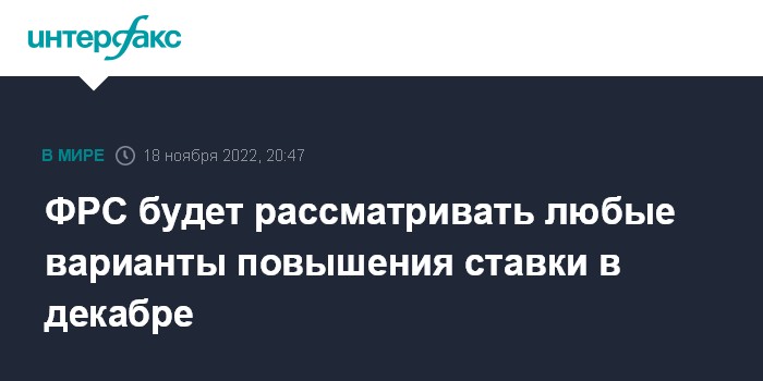 ФРС будет рассматривать любые варианты повышения ставки в декабре