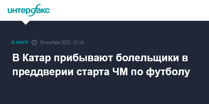 Москва. 18 ноября. INTERFAX.RU - Группы болельщиков из разных стран мира прибывают в Катар, где в воскресенье начнется чемпионат мира по футболу, сообщают ближневосточные СМИ.