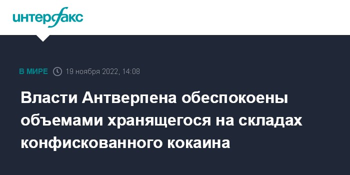 Бельгийские СМИ сообщили в субботу, что таможня, полиция и прокуратура конфисковали в 2021 году около 90 тонн кокаина в порту Антверпена. Это исторический рекорд, однако всё указывает на то, что в 2022 году он будет побит. Таможенники полагают, что общий объем конфискованного наркотика в нынешнем году достигнет 100 тонн.