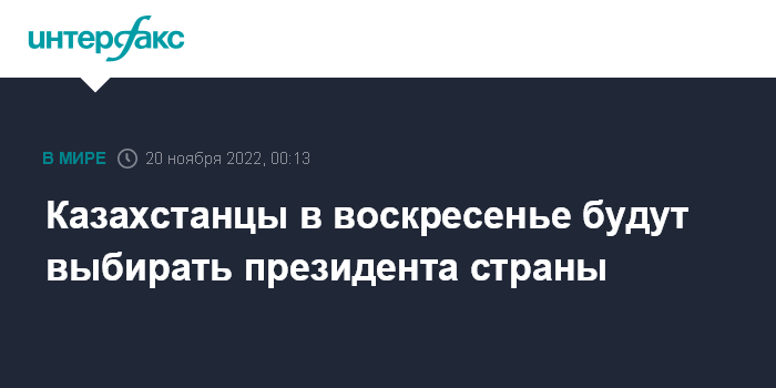Москва. 20 ноября. INTERFAX.RU - В Казахстане в воскресенье пройдут внеочередные президентские выборы, на пост главы государства претендуют шесть человек, в том числе действующий президент Касым-Жомарт Токаев.