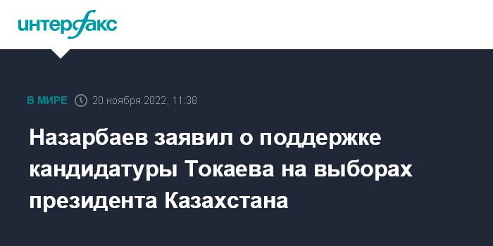 Москва. 20 ноября. INTERFAX.RU - Первый президент Казахстана Нурсултан Назарбаев высказал поддержку кандидатуре Касым-Жомарта Токаева на внеочередных президентских выборах, которые проходят в Казахстане в воскресенье.