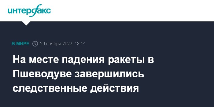 Москва. 20 ноября. INTERFAX.RU - Следователи в воскресенье завершили все необходимые действия на территории зерносушилки в польском населенном пункте Пшеводув, где во вторник упала ракета украинской ПВО.