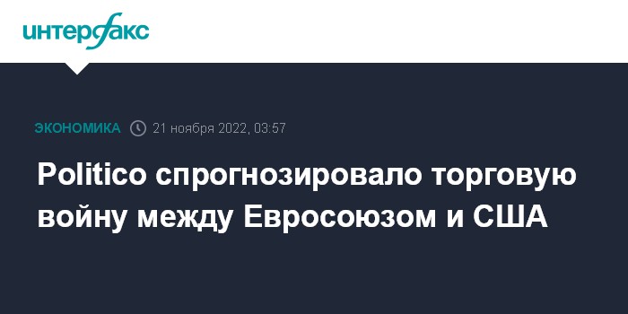 Москва. 21 ноября. INTERFAX.RU - Европа серьезно готовится к тому, чтобы ответить США на вступление 1 января в силу американского закона о снижении инфляции, рассматриваемые европейцами меры могут привести к торговой трансатлантической войне, предупреждает издание Politico.