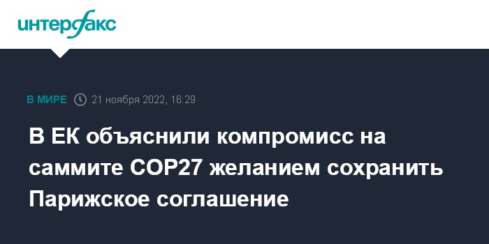 В ЕК объяснили компромисс на саммите COP27 желанием сохранить Парижское соглашение