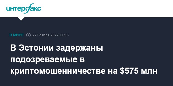 Москва. 22 ноября. INTERFAX.RU - Центральная криминальная полиция Эстонии и ФБР США задержали в Таллине предпринимателей, подозреваемых в криптомошенничестве и отмывании $575 млн.