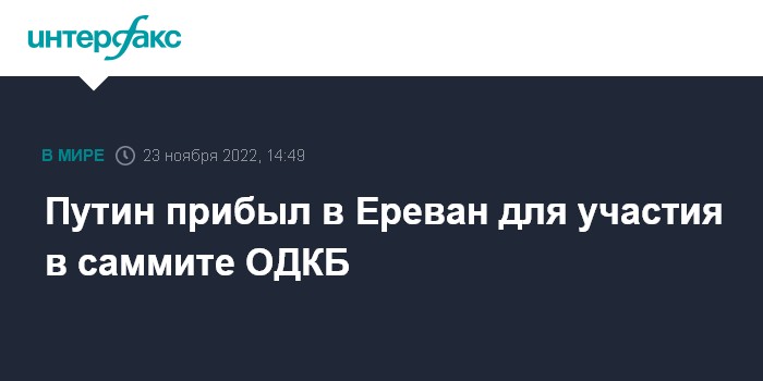 Москва. 23 ноября. INTERFAX.RU - Президент России Владимир Путин прибыл в Ереван, где примет участие в заседании Совета коллективной безопасности (СКБ) ОДКБ.