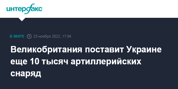 Москва. 23 ноября. INTERFAX.RU - Британские власти передадут Украине еще 10 тысяч артиллерийских снарядов и уже направили Киеву вертолеты Sikorsky SH-3 Sea King, сообщило британское Минобороны.