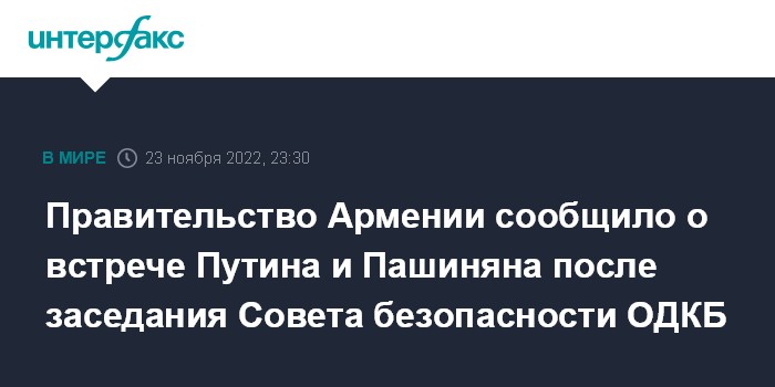 Правительство Армении сообщило о встрече Путина и Пашиняна после заседания Совета безопасности ОДКБ