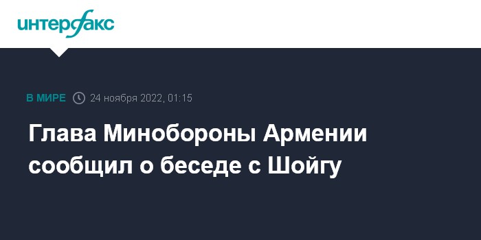 Москва. 24 ноября. INTERFAX.RU - Министр обороны Армении Сурен Папикян сообщил в социальной сети, что провел короткую беседу с министром обороны России Сергеем Шойгу.