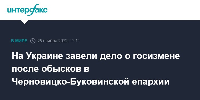 На Украине завели дело о госизмене после обысков в Черновицко-Буковинской епархии
