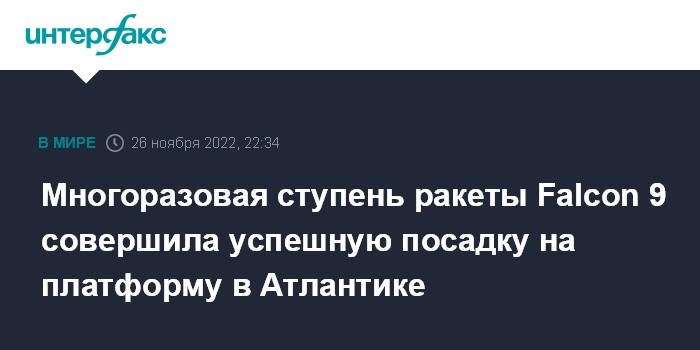 Многоразовая ступень ракеты Falcon 9 совершила успешную посадку на платформу в Атлантике