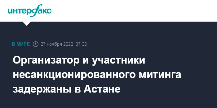 Москва. 27 ноября. INTERFAX.RU - В Астане задержаны участники незаконного митинга, сообщила в воскресенье пресс-служба МВД Казахстана.