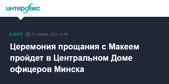 Церемония прощания с Макеем пройдет в Центральном Доме офицеров Минска