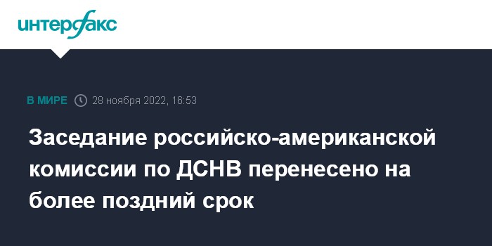 Москва. 28 ноября. INTERFAX.RU - Планировавшееся на этой неделе заседание российско-американской комиссии по Договору СНВ перенесено на более поздний срок, сообщили в понедельник в МИД России.