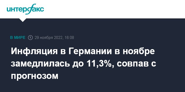 Инфляция в Германии в ноябре замедлилась до 11,3%, совпав с прогнозом