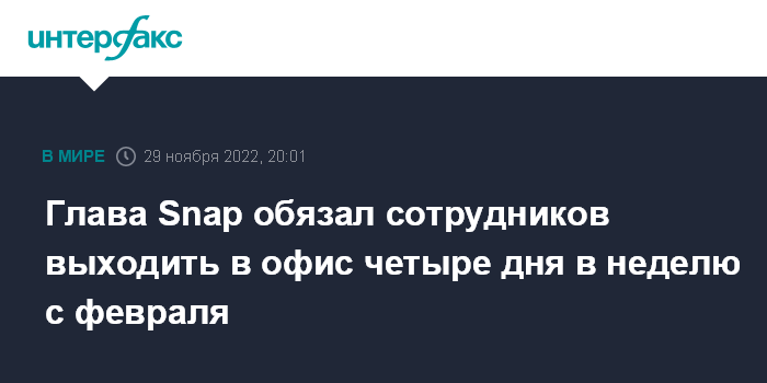 Глава Snap обязал сотрудников выходить в офис четыре дня в неделю с февраля