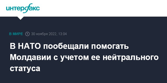 Москва. 30 ноября. INTERFAX.RU - НАТО будет помогать Молдавии, уважая ее статус нейтралитета, заявил заместитель генерального секретаря Организации Североатлантического договора Мирча Джоанэ в среду рамках Aspen - GMF Bucharest Forum-2022, который проходит параллельно со встречей министров иностранных стран НАТО в Бухаресте.