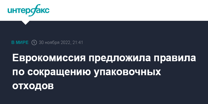 Москва. 30 ноября. INTERFAX.RU - Еврокомиссия (ЕК) предприняла в среду очередной шаг в рамках выстраивания экономики замкнутого цикла - предложила новые общеевропейские правила упаковки, чтобы справиться с этим постоянно растущим источником отходов.