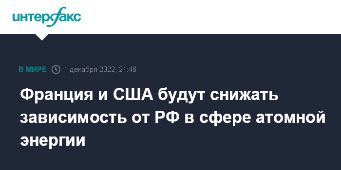Франция и США будут снижать зависимость от РФ в сфере атомной энергии