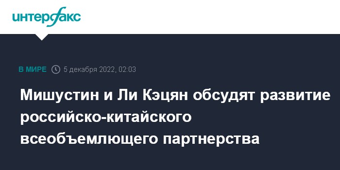 Мишустин и Ли Кэцян обсудят развитие российско-китайского всеобъемлющего партнерства