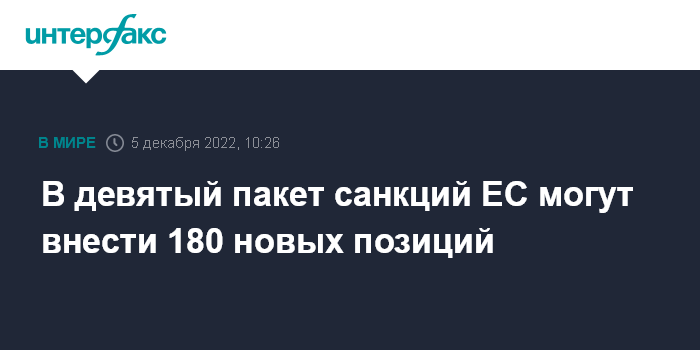29 ноября Politico сообщало, что переговоры о девятом пакете санкций могли начаться уже на текущей неделе.