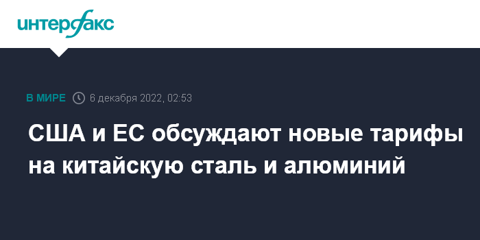 Москва. 6 декабря. INTERFAX.RU - США и Европейский союз рассматривают введение новых тарифов на китайскую сталь и алюминий в рамках борьбы с выбросами углекислого газа и глобальным избытком производственных мощностей, сообщает Bloomberg со ссылкой на осведомленные источники.