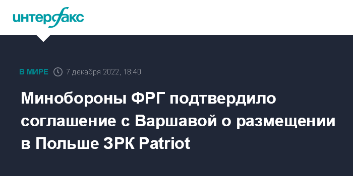 Ранее польская сторона выступила с предложением, чтобы комплексы Patriot, которые Германия намеревалась направить в Польшу, были бы поставлены на Украину, однако Берлин от такой идеи отказался.