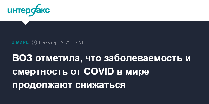 ВОЗ отметила, что заболеваемость и смертность от COVID в мире продолжают снижаться