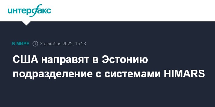 Москва. 8 декабря. INTERFAX.RU - США в ближайшие недели направят в Эстонию пехотную роту и подразделение с реактивными системами залпового огня HIMARS, а также соответствующее оборудование и системы управления. Об этом сообщает в четверг агентство BNS со ссылкой на эстонское министерство обороны.