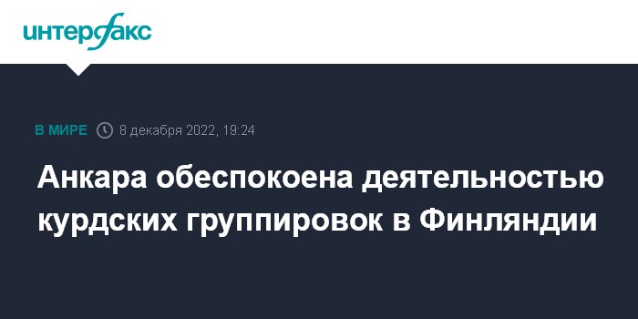 Москва. 8 декабря. INTERFAX.RU - Финляндия до сих пор оставляет курдским группировкам возможность вести активность на своей территории, но Анкара ждет от Хельсинки конкретных мер по этому вопросу, заявил глава Минобороны Турции Хулуси Акар на совместной пресс-конференции с финским коллегой Антти Кайкконеном. Об этом сообщает АР.