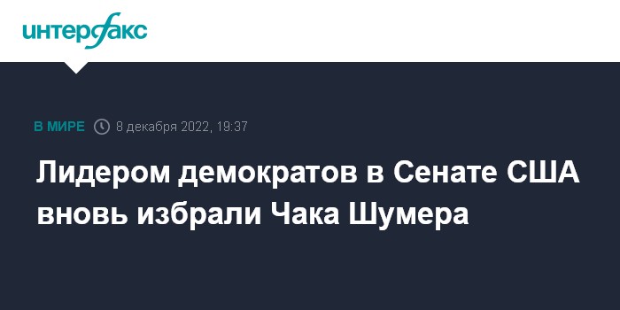 Москва. 8 декабря. INTERFAX.RU - Сенатор Чак Шумер вновь избран на должность лидера демократов в Сенате США, сообщает АР.