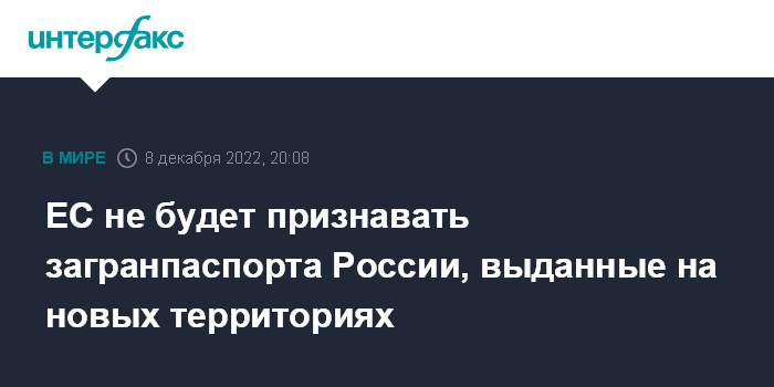 ЕС не будет признавать загранпаспорта России, выданные на новых территориях