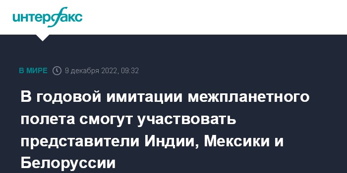 В годовой имитации межпланетного полета смогут участвовать представители Индии, Мексики и Белоруссии