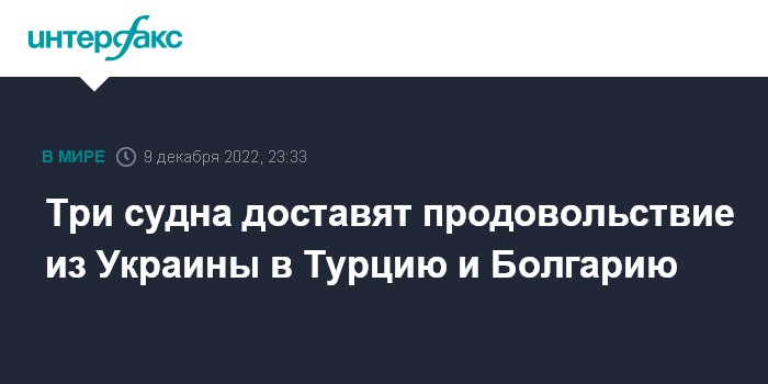 "9 декабря три судна вышли из украинских портов, они перевозят в общей сложности 54 тыс. тонн зерна и другого продовольствия в рамках черноморской зерновой инициативы", - говорится в сообщении.