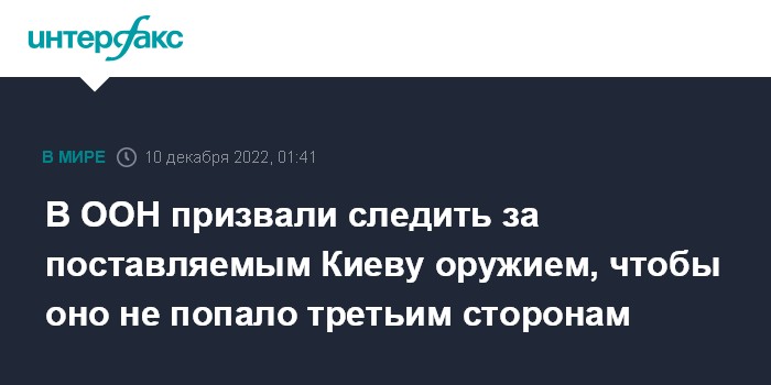 Москва. 10 декабря. INTERFAX.RU - Замгенсека ООН Идзуми Накамицу призывает страны, которые поставляют оружие Киеву, контролировать его поставки и получение.