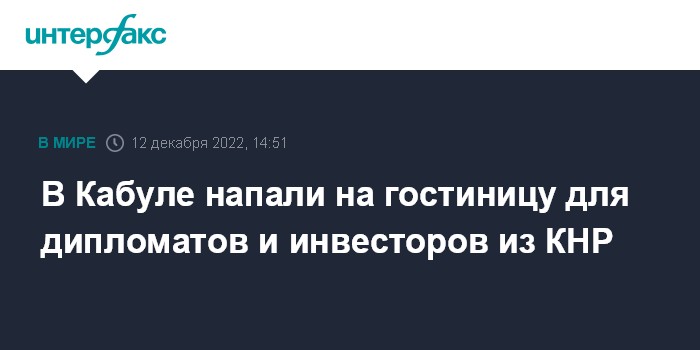 Москва. 12 декабря. INTERFAX.RU - Террористы-смертники совершили нападение на отель в Кабуле, где останавливаются китайские дипломаты и инвесторы, сообщило информационное агентство Aamaj News.