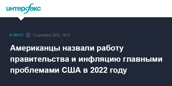 Американцы назвали работу правительства и инфляцию главными проблемами США в 2022 году