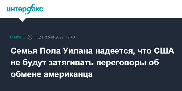 Семья Пола Уилана надеется, что США не будут затягивать переговоры об обмене американца