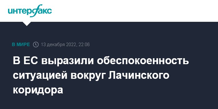 "Европейский Союз с серьезной обеспокоенностью следит за различными событиями вокруг Лачинского коридора с начала декабря. ЕС призывает власти Азербайджана обеспечить свободу и безопасность передвижения по коридору в соответствии с трехсторонним заявлением от 9 ноября 2020 года. Ограничения такой свободы передвижения причиняют значительный дискомфорт местному населению и вызывают гуманитарные опасения", - говорится в заявлении пресс-секретаря внешнеполитической службы ЕС Петера Стано.