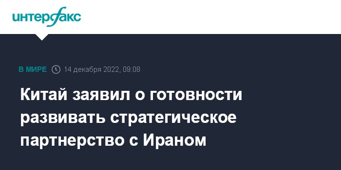 Китай заявил о готовности развивать стратегическое партнерство с Ираном