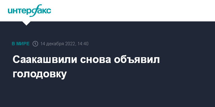 Москва. 14 декабря. INTERFAX.RU - Бывший президент Грузии Михаил Саакашвили, находящийся на лечении в клинике "Вивамед", объявил в среду голодовку после того, как пенитенциарная служба не дала ему возможность дистанционно принять участие в судебном процессе по делу о возможной отсрочке своего тюремного заключения, сообщил журналистам адвокат Шалва Хачапуридзе.