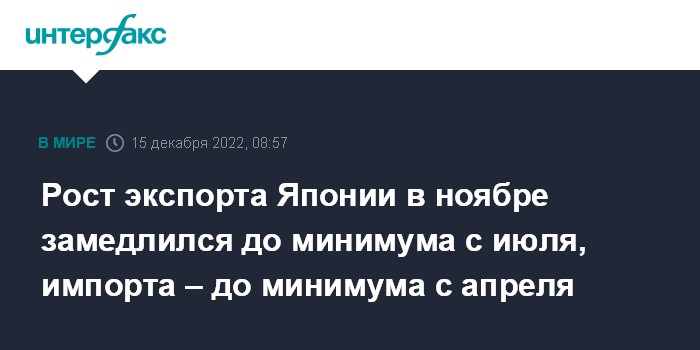 Рост экспорта Японии в ноябре замедлился до минимума с июля, импорта – до минимума с апреля