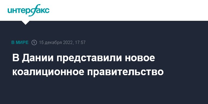 Москва. 15 декабря. INTERFAX.RU - Датский премьер Метте Фредериксен в четверг представила новое коалиционное центристское правительство, сформированное по итогам ноябрьских парламентских выборов, передает Associated Press.