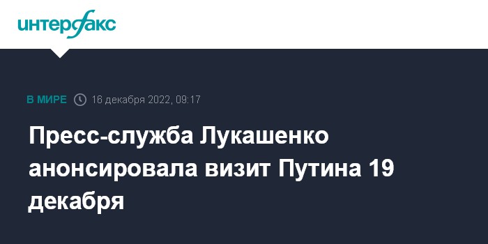 Пресс-служба Лукашенко анонсировала визит Путина 19 декабря