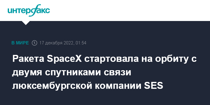 Ракета SpaceX стартовала на орбиту с двумя спутниками связи люксембургской компании SES