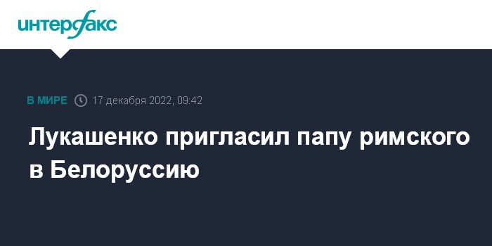 Москва. 17 декабря. INTERFAX.RU - Президент Белоруссии Александр Лукашенко пригласил gапу римского Франциска и его представителей в Белоруссию и отметил совпадение позиций с лидером католической церкви о разрешении мировых проблем.